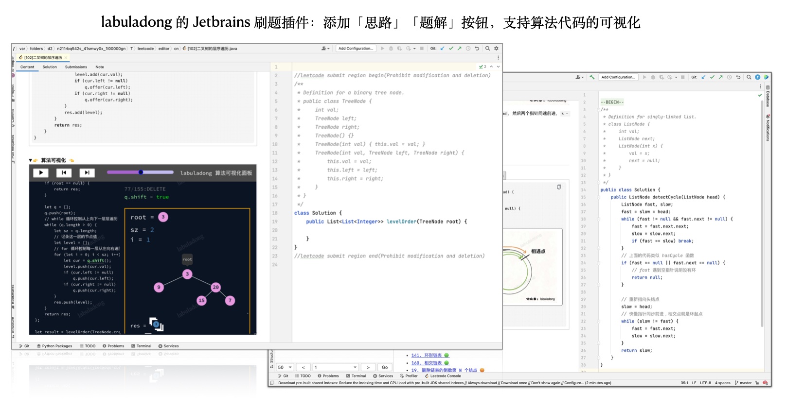 我的算法网站、所有配套插件都集成了一个算法可视化工具,可以对数据结构和递归过程进行可视化,大幅降低理解算法的难度。几乎每道题目的解法代码都有对应的可视化面板,具体参见下方介绍。