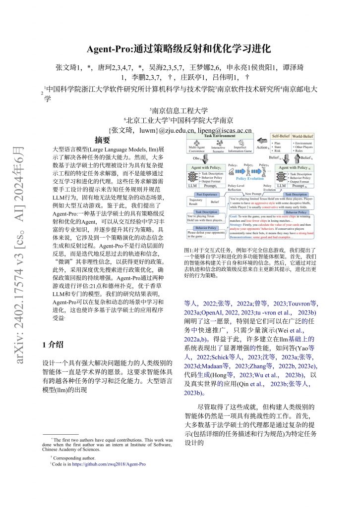 - Zhang, W. , et al. (2024). Agent-Pro:通过策略级反射和优化学习进化. arXiv:2402.17574.✅