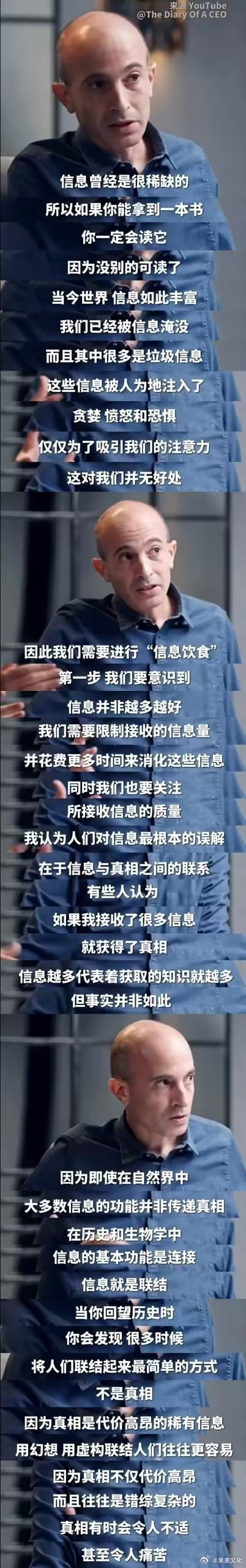 在这个信息爆炸的时代,信息节食不仅是个人的选择,更是社会的需求。赫拉利提醒我们,「我们需要进行『信息饮食』,以便更好地理解这个复杂的世界。」这并不是让我们完全远离信息,而是要在信息的海洋中学会游泳。