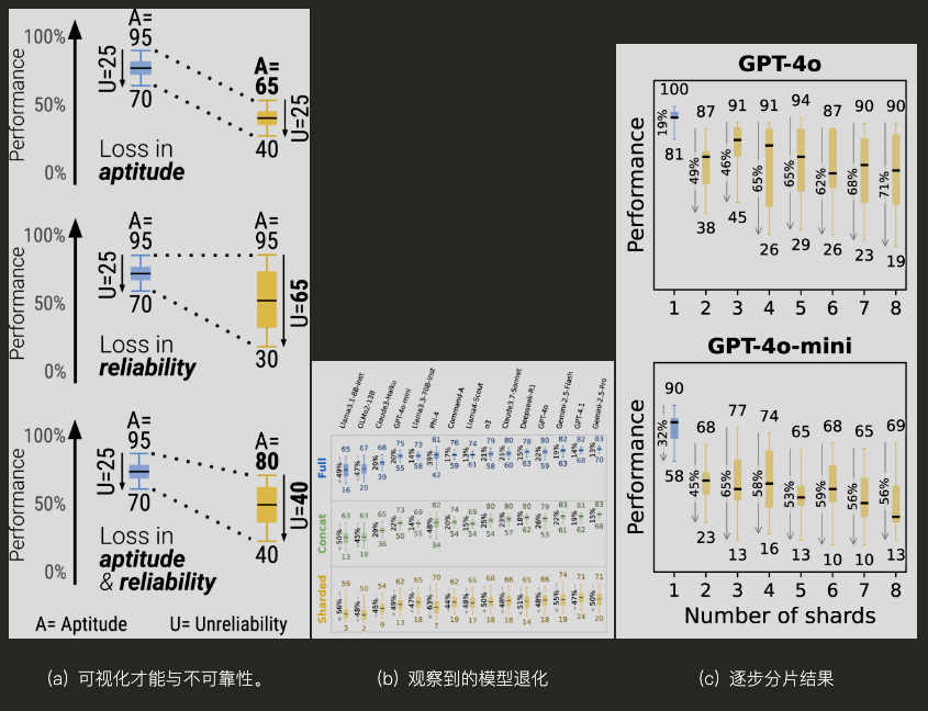图注:单轮对话中,能力高=更可靠;多轮对话中,所有模型都变得极不可靠。