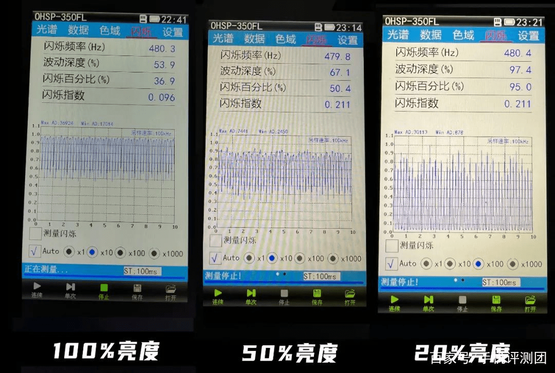 结合频闪频率和波动深度,可以对频闪风险进行评估。例如,iPhone12系列在50%亮度下的波动深度为83.8%,属于高风险范围。然而,仅凭频闪和波动深度无法全面评估风险程度,还需要结合实际拍摄图像来判断。有些手机在低亮度下可能频闪严重,但在拍摄照片时并没有明显的频闪现象,这种情况下可以认为风险较低。