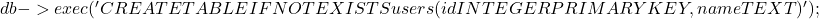 $db->exec('CREATE TABLE IF NOT EXISTS users (id INTEGER PRIMARY KEY, name TEXT)');