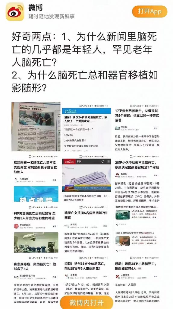 脑死亡の谎言 2024-11-162024-07-26 作者 C3P00 脑死亡是一个彻头彻尾的骗局,其目的就是为了从还活着的人身上摘取器官。 器官移植是没有办法从尸体上摘取器官的。 为了从活人身上摘取器官,创造性的发明了所谓的脑死亡!